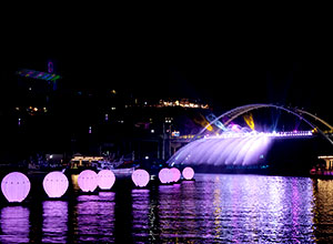 특정 시간에는 비누방울과 미디어아트가 어우러진 쇼가 펼쳐지며, 관람객 위치에 따라 반응하는 인터랙티브 시스템으로 누구나 체험할 수 있는 즐거운 공간을 완성합니다. 버블머신 효과와 조명 연출이 더해져, 강구안 야경 속 새로운 볼거리를 선사합니다.