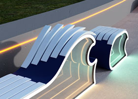 압력센서를 내재한 벤치는 LED 빛 변화와 진동, 음향 효과로 휴식의 즐거움을 더합니다.