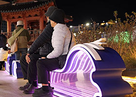 인터랙티브 미디어아트 벤치에 앉아보세요.