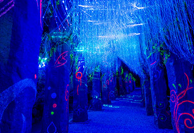 바닥에 새겨진 패턴 조명을 밟으면 빛의 색이 변하고, 시간에 따라 자동으로 컬러가 바뀌어 역동적인 분위기를 연출합니다.